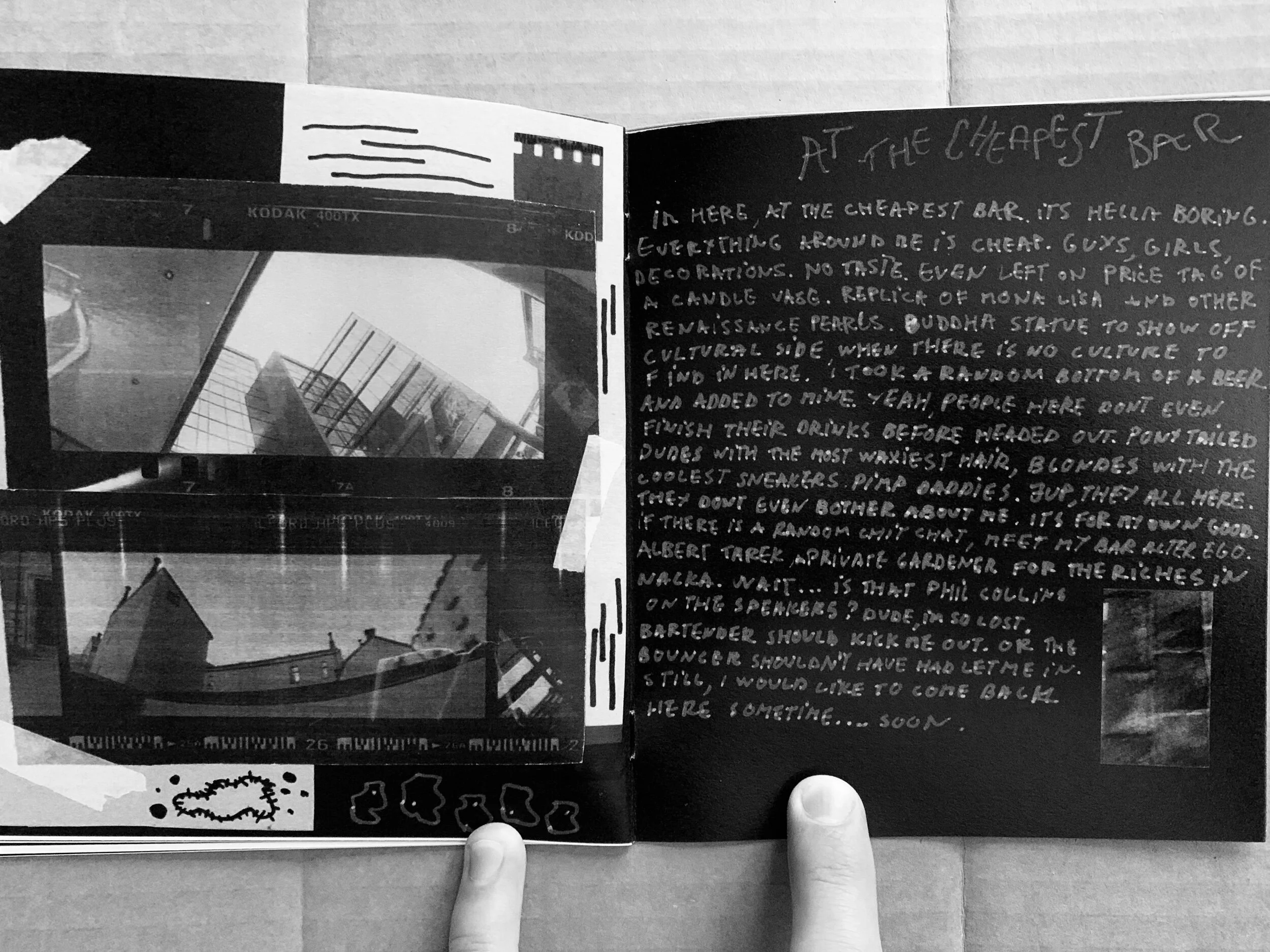 ”pictures that make you feel empty” zine with analog photography in Iceland, artwork collaborations with friends, desolated poetry. self published